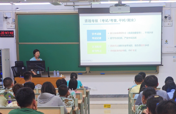 8月29日晚上,在进行了军训第一天训练后,学院副院长王诗忠教授、党委彭灵灵副书记、教务员张迪老师为新生们组织了第二次新生教育会。彭灵灵副书记代表学院再次欢迎同学们的到来,希望同学们积极参加军训,尽快适应新环境,融入大学的学习和生活。张迪老师从入学注册到毕业学位,为同学们介绍了学校和学院教务方面各类课程修读和专业学习的信息,并强调了教务的规定和纪律。