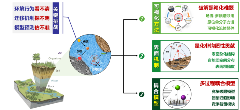 中共党员,“百人计划”人才引进副教授,博士生导师。课题组主要开展土壤-水环境中胶体态污染物迁移行为及机理的研究。从研究方法、界面机制和预测模型等方面开展针对性研究,创新性地开发了多尺度可视化研究手段,有效破解了在“不可见”的土壤环境中,胶体归趋行为难定量的技术屏障;发现了胶体及土壤介质表面非均质性调控污染物转化途径、传质效率和沉积行为的新机制;构建了量化非均质性贡献的多过程耦合迁移模型,实现了复杂环境中污染物归趋的准确预测。研究成果突破了土壤-水环境中胶体态污染物界面作用及迁移行为难定量的技术难题,扩展了胶体迁移理论的内涵,为土壤污染风险评估、修复材料研发及调控策略优化提供了新视角。